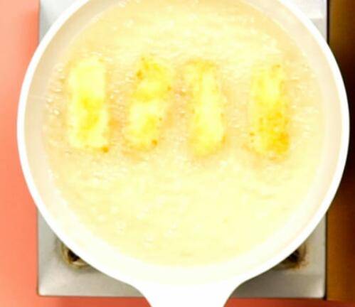 锅中油温烧制七成热,放入奶片,小火炸至两面金黄。