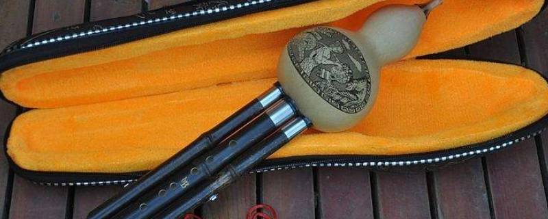 2、胡芦丝的结构为:由一个完整的天然葫芦、三根竹管和三枚金属簧片做成,整个葫芦做气箱,葫芦低部插进三根粗细来不同的竹管,每根插入葫芦中的竹管部分,镶有一枚铜质或银质簧片,中间的竹管最粗,上面开着七个音孔,把它称为主管,两旁是附管。上面只设簧片,不开音孔,只能发出与主管的共鸣的和音。通常左面附管发3音,右边附管不发音。