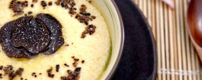 4、蒸锅水开后,放入蒸碗,加上盖子,转文火,蒸8分钟,放入黑松露片,盖上盖子,用余温焖1分钟既即可。