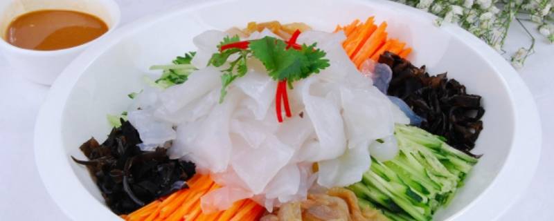 5、将拌好的料汁浇在黄瓜拉皮上。