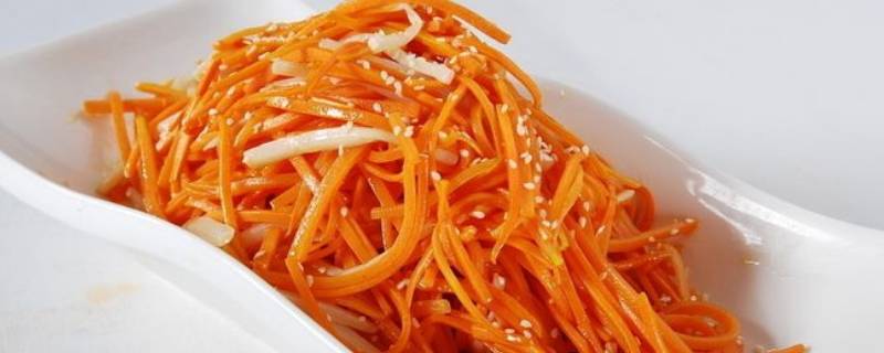 4、锅中留油,放入胡萝卜丝炒到微软。