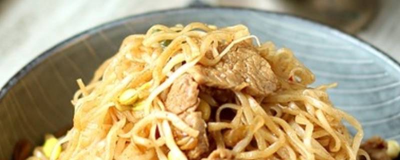 6、加入黄豆芽翻炒。