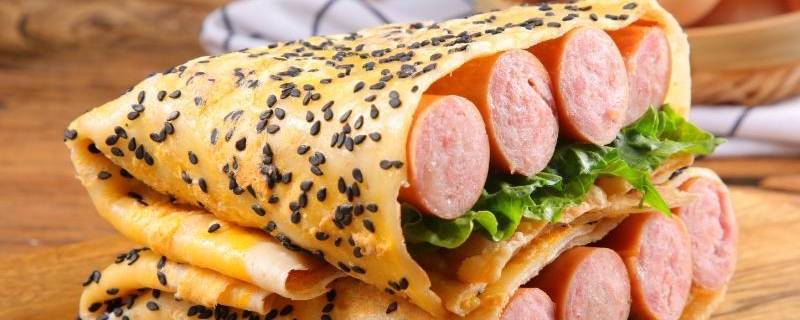 7、在饼上刷一层甜面酱,放入里脊肉和生菜,并撒上芝麻,卷起煎饼卷即可食用。
