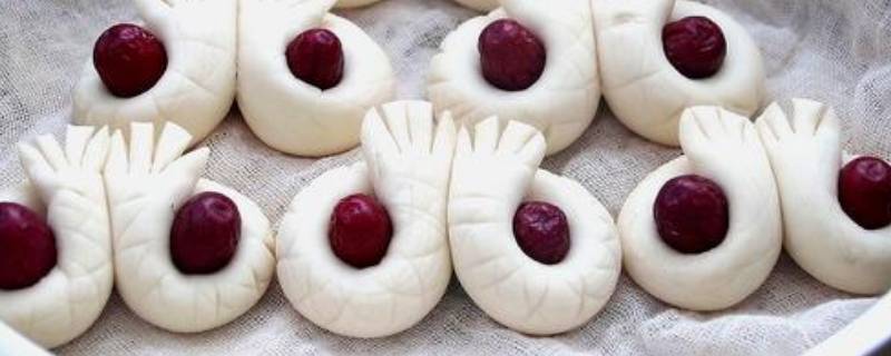 中间再放红枣,再放一圆饼,再放上一个小馒头,上锅蒸30分钟,出锅。