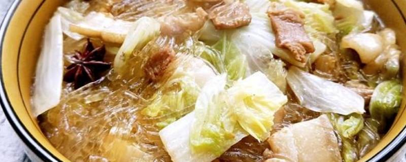 4、倒入粉条翻炒2分钟,倒入没过白菜粉条的水后,加所有调味料焖煮10分钟即可。