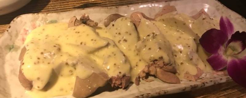 日料是芥末鸡肝。芥末鸡肝是一道日本料理,做法是先将鸡肝加各种配料煮熟入味,再用大藏芥末配合作料调汁刷在煮好的鸡肝上。鸡肝每一块都包裹的芥末酱,味道很浓郁,鸡肝不腥还很细腻。