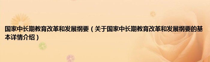 本文关于国家中长期教育改革和发展纲要的基本详情介绍就讲解完毕,希望对大家有所帮助。