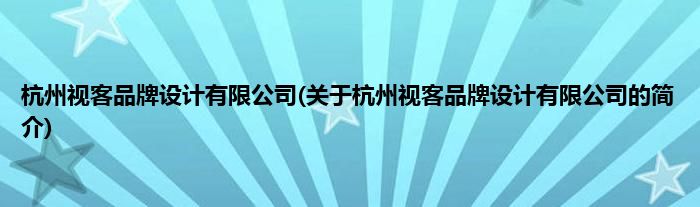 本文关于杭州视客品牌设计有限公司的简介就讲解完毕,希望对大家有所帮助。