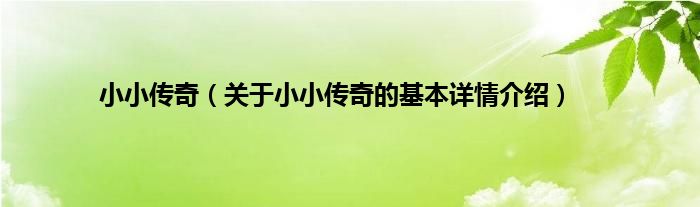 大家好我是小蝌蚪,小小传奇,关于小小传奇的基本详情介绍很多人还不知道,那么现在让我们一起来看看吧!