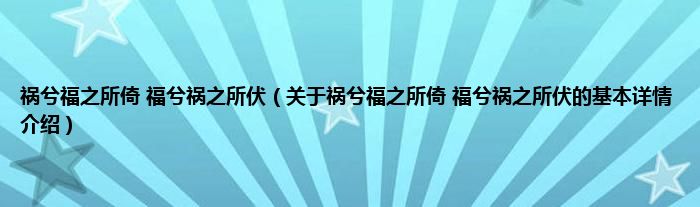 本文关于祸兮福之所倚 福兮祸之所伏的基本详情介绍就讲解完毕,希望对大家有所帮助。