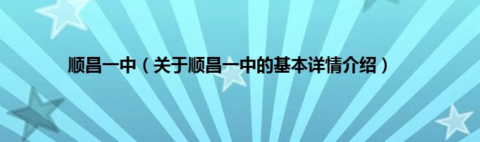 本文关于顺昌一中的基本详情介绍就讲解完毕,希望对大家有所帮助。