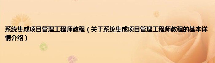 本文关于系统集成项目管理工程师教程的基本详情介绍就讲解完毕,希望对大家有所帮助。