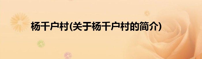 杨千户村(关于杨千户村的简介)