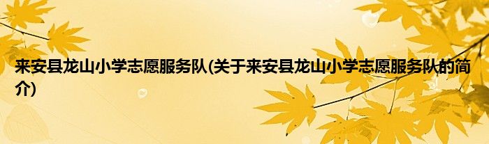 1、 来安县龙山小学志愿服务队是由来安县志愿者协会领导下的志愿团体。