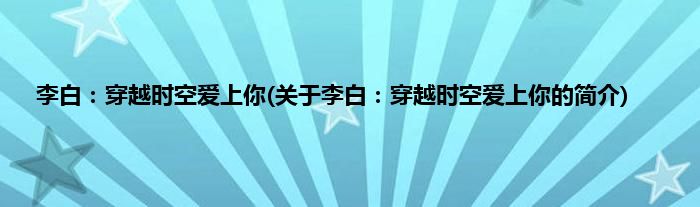 本文关于李白:穿越时空爱上你的简介就讲解完毕,希望对大家有所帮助。