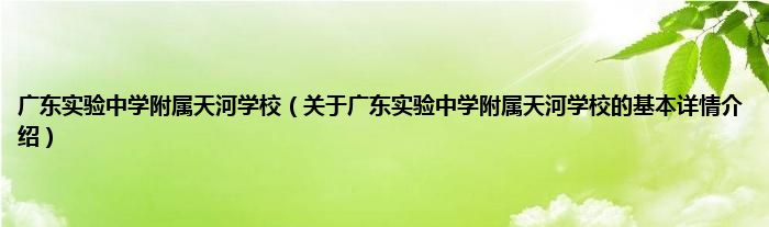 本文关于广东实验中学附属天河学校的基本详情介绍就讲解完毕,希望对大家有所帮助。
