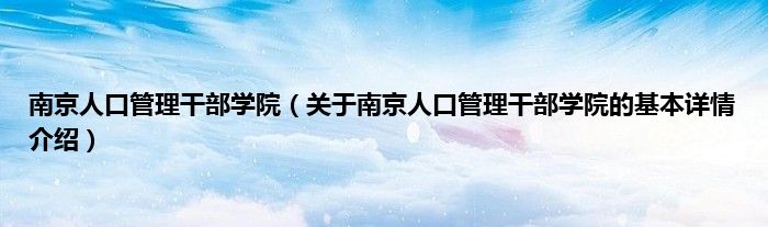 本文关于南京人口管理干部学院的基本详情介绍就讲解完毕,希望对大家有所帮助。