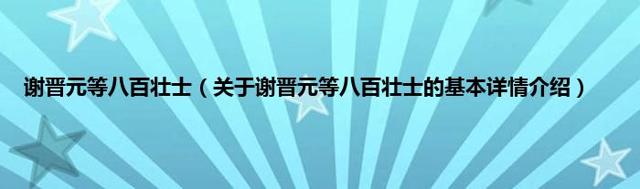 本文关于谢晋元等八百壮士的基本详情介绍就讲解完毕,希望对大家有所帮助。