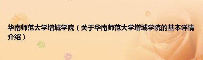 本文关于华南师范大学增城学院的基本详情介绍就讲解完毕,希望对大家有所帮助。