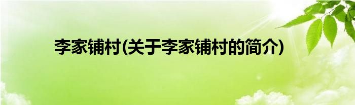 本文关于李家铺村的简介就讲解完毕,希望对大家有所帮助。