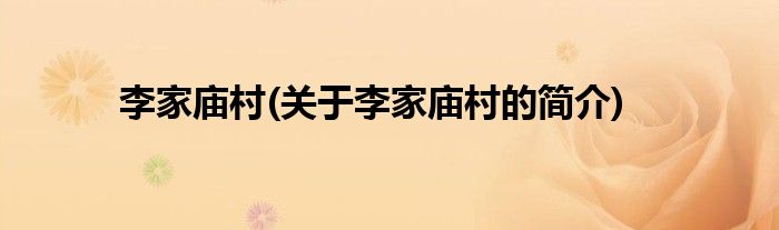大家好,李家庙村,关于李家庙村的简介很多人还不知道,现在让我们一起来看看吧!