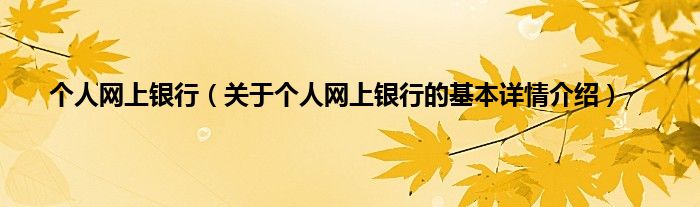 本文关于个人网上银行的基本详情介绍就讲解完毕,希望对大家有所帮助。