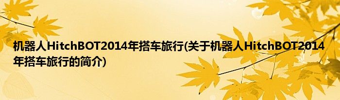 大家好,机器人HitchBOT2014年搭车旅行,关于机器人HitchBOT2014年搭车旅行的简介很多人还不知道,现在让我们一起来看看吧!