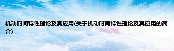本文关于机动时间特性理论及其应用的简介就讲解完毕,希望对大家有所帮助。