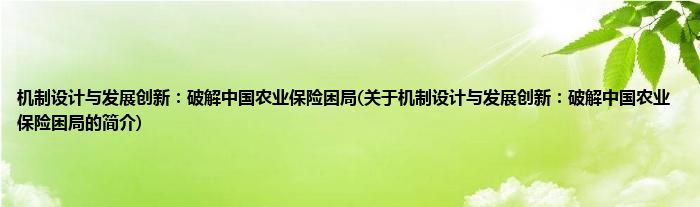 机制设计与发展创新:破解中国农业保险困局(关于机制设计与发展创新:破解中国农业保险困局的简介)