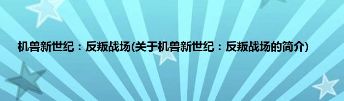 本文关于机兽新世纪:反叛战场的简介就讲解完毕,希望对大家有所帮助。