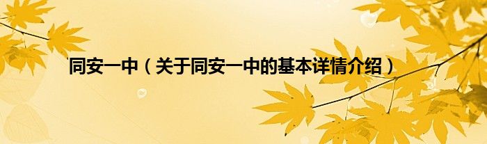 本文关于同安一中的基本详情介绍就讲解完毕,希望对大家有所帮助。