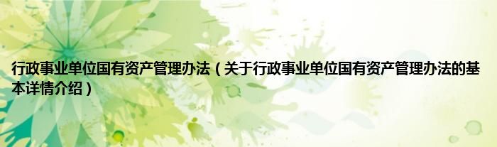 本文关于行政事业单位国有资产管理办法的基本详情介绍就讲解完毕,希望对大家有所帮助。
