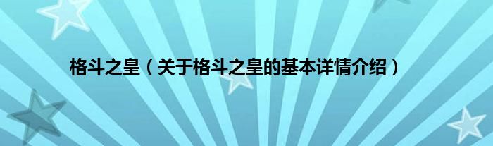 本文关于格斗之皇的基本详情介绍就讲解完毕,希望对大家有所帮助。