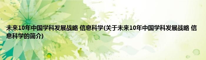 本文关于未来10年中国学科发展战略。信息科学的简介就讲解完毕,希望对大家有所帮助。