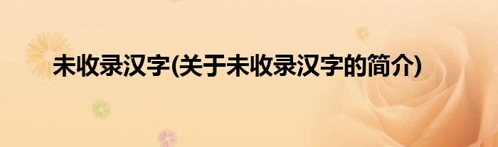 1、 未收录汉字是指一些现时Unicode的中日韩统一表意文字未有收录的汉字。