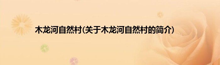 本文关于木龙河自然村的简介就讲解完毕,希望对大家有所帮助。