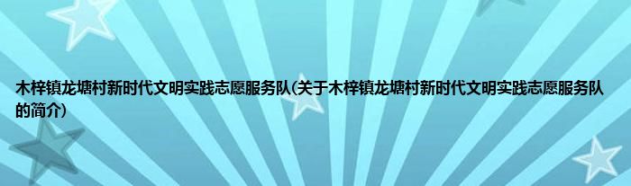 本文关于木梓镇龙塘村新时代文明实践志愿服务队的简介就讲解完毕,希望对大家有所帮助。