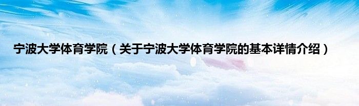 本文关于宁波大学体育学院的基本详情介绍就讲解完毕,希望对大家有所帮助。