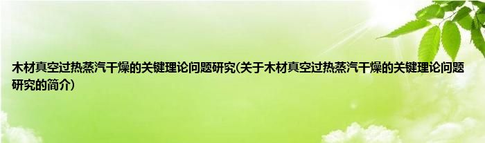 木材真空过热蒸汽干燥的关键理论问题研究(关于木材真空过热蒸汽干燥的关键理论问题研究的简介)