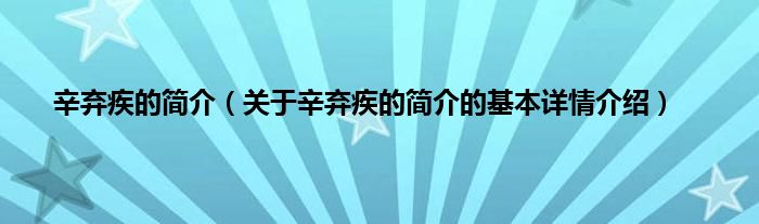本文关于辛弃疾的简介的基本详情介绍就讲解完毕,希望对大家有所帮助。
