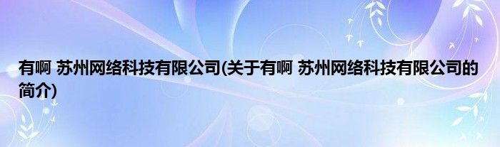 有啊 苏州网络科技有限公司(关于有啊 苏州网络科技有限公司的简介)