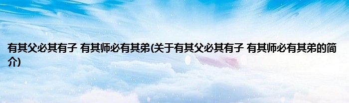 有其父必其有子 有其师必有其弟(关于有其父必其有子 有其师必有其弟的简介)