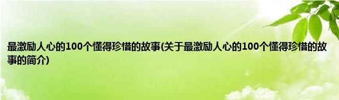 本文关于最激励人心的100个懂得珍惜的故事的简介就讲解完毕,希望对大家有所帮助。