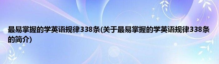 本文关于最易掌握的学英语规律338条的简介就讲解完毕,希望对大家有所帮助。