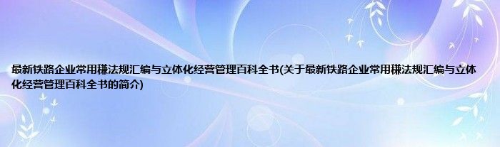 本文关于最新铁路企业常用稴法规汇编与立体化经营管理百科全书的简介就讲解完毕,希望对大家有所帮助。