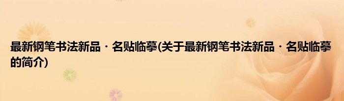 本文关于最新钢笔书法新品・名贴临摹的简介就讲解完毕,希望对大家有所帮助。