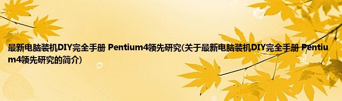 最新电脑装机DIY完全手册Pentium4领先研究(关于最新电脑装机DIY完全手...