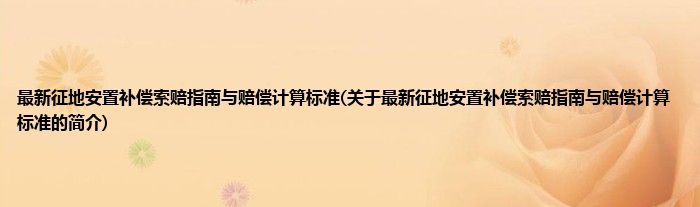 本文关于最新征地安置补偿索赔指南与赔偿计算标准的简介就讲解完毕,希望对大家有所帮助。