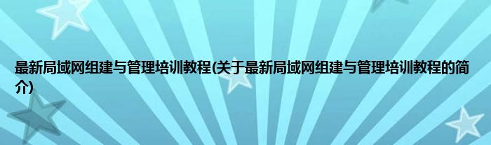 大家好,最新局域网组建与管理培训教程,关于最新局域网组建与管理培训教程的简介很多人还不知道,现在让我们一起来看看吧!