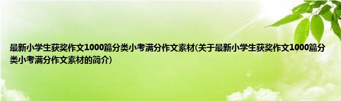 本文关于最新小学生获奖作文1000篇分类小考满分作文素材的简介就讲解完毕,希望对大家有所帮助。